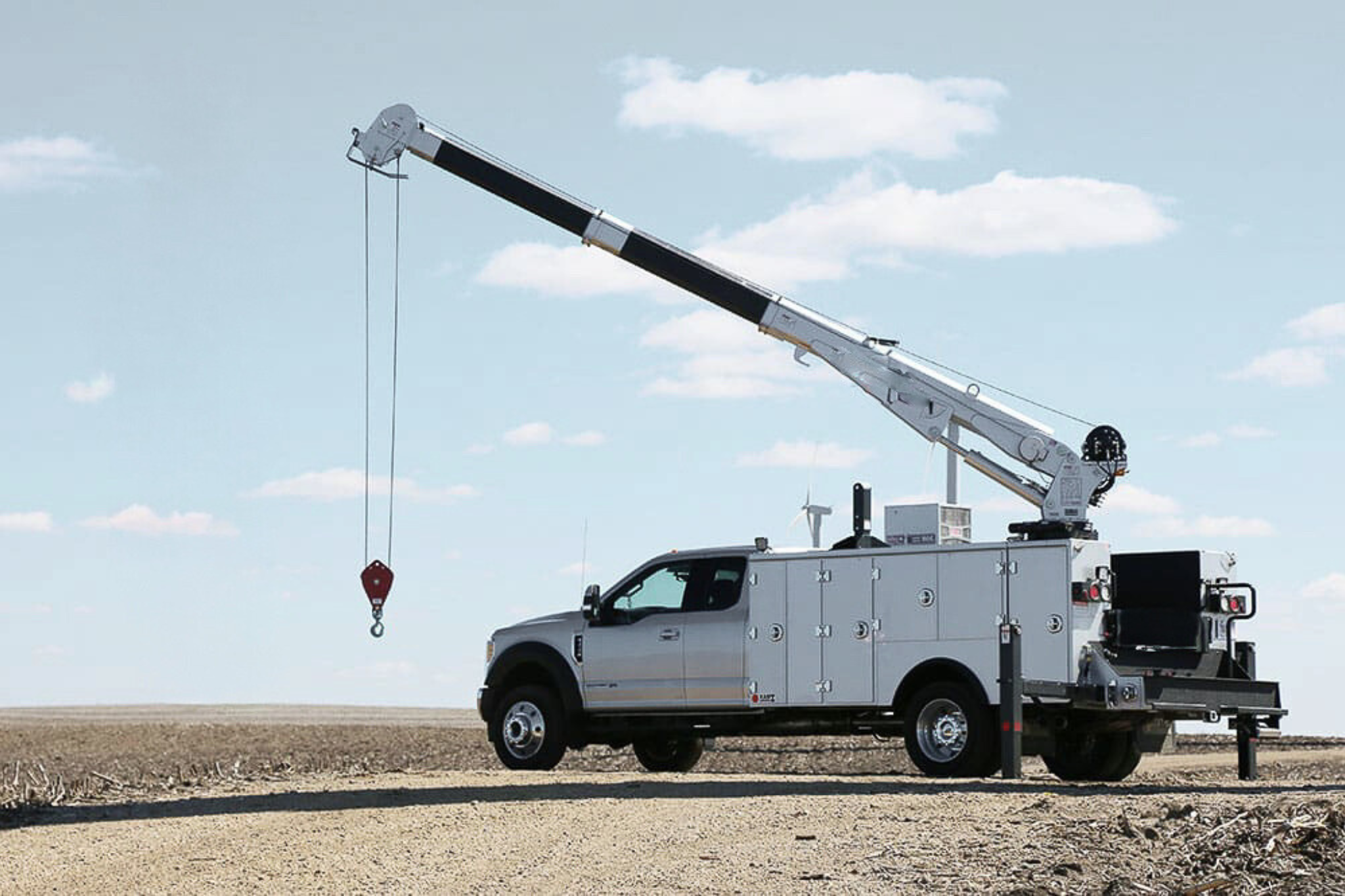 The operator typically controls the service truck crane through radio remote or pendant control, while stationed on the ground, closely monitoring the load.